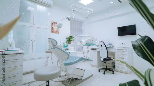 Dental clinic and dental care by dentist In a clean, white room