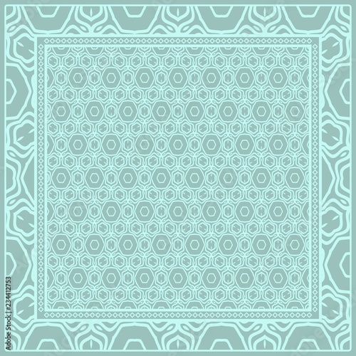 Design print for kerchief. The pattern of geometric floral ornament. Vector illustration. The idea for design prints for neck scarves, carpets, bandanas