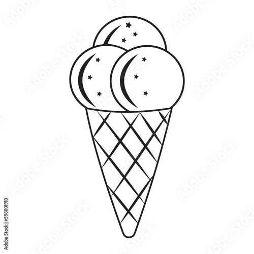 dessert ice cream in a cup black outline, vector isolated illustration in doodle style