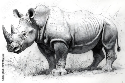 Detailed grayscale rhino illustration
