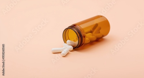 Detailed image of a pill bottle on a smooth flat surface