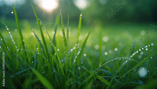 Dew-covered Wild Grass and Meadows at Dawn