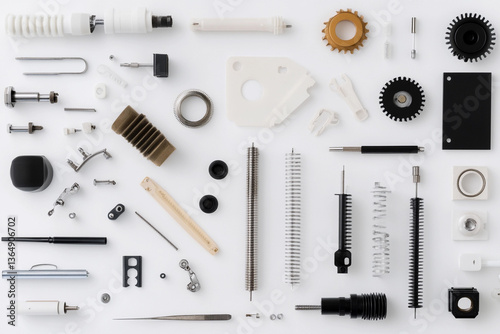 Disassembled engine parts arranged meticulously on a flat surface for detailed examination and analysis