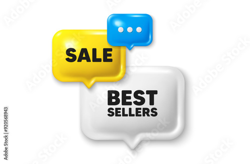 Discount speech bubble offer 3d icon. Best sellers tag. Special offer price sign. Advertising discounts symbol. Best sellers discount offer. Speech bubble sale banner. Discount balloon. Vector