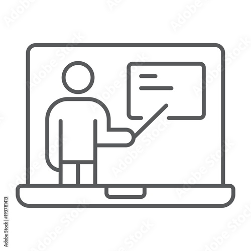 Distance Education thin line icon, e learning and education, online training sign vector graphics, a linear pattern on a white background, eps 10.