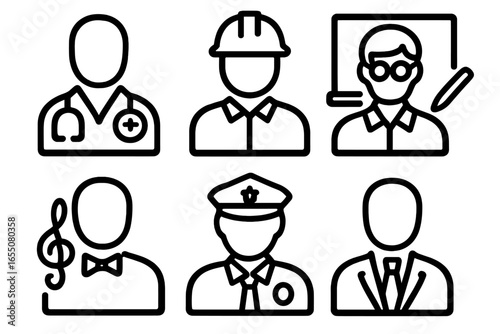 Diverse professions illustrated in a simple graphic design showcasing various career roles and their characteristics