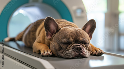 Dog Relaxing on MRI Table in Veterinary Clinic