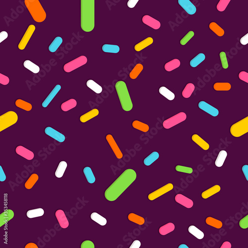Doughnut glaze with sprinkles seamless pattern, tasty poster design template, vector illustration