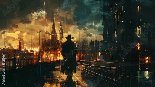 Dramatic Nighttime Cityscape with Towering Flames and Ominous Atmosphere