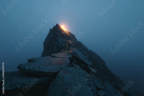 Dramatic Sunrise Over Mountain Peak Foggy Landscape Nature Photography Majestic View