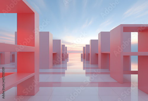 Dreamy 3d render of a modern structure