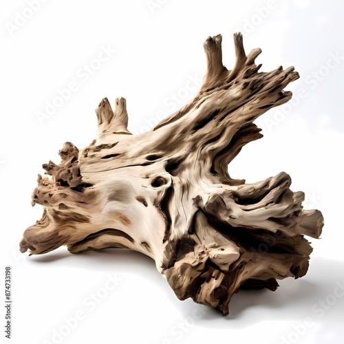 Driftwood on white background, AI Generated