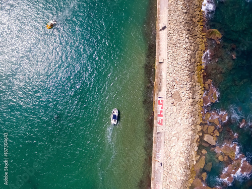 drone view of two boats sailing