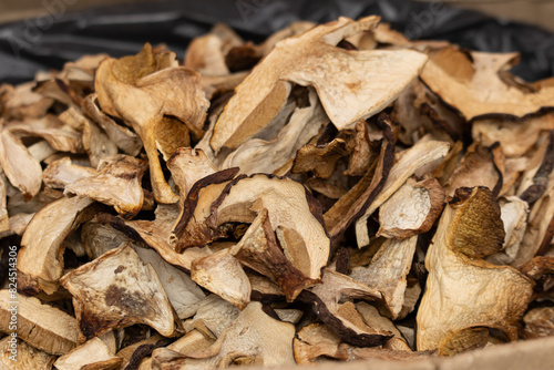 dry porcini mushrooms as a background.