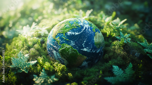 Ecofriendly planet earth lush green foliage renewable energy symbols corporate responsibility concept
