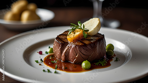 elegant and beautifully plated beef steak with gourmet sides