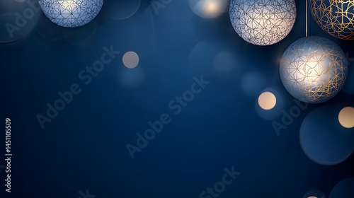 Elegant Blue and Gold Christmas Ornaments Festive Background