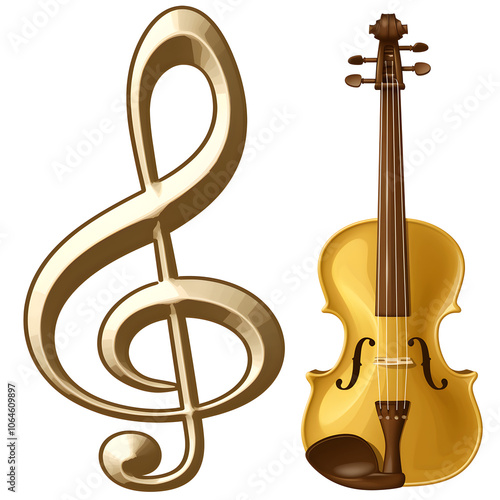 Elegant Violin Illustration with Treble Clef and Musical Notes Celebrating Classical Music and Creativity