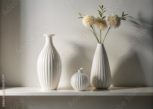 Elegant White Shelf Display Featuring Decorative Vases, Minimalist Home Decor, Contemporary Interior Design, Stylish Home Accessories, Modern Aesthetic, Chic Living Space