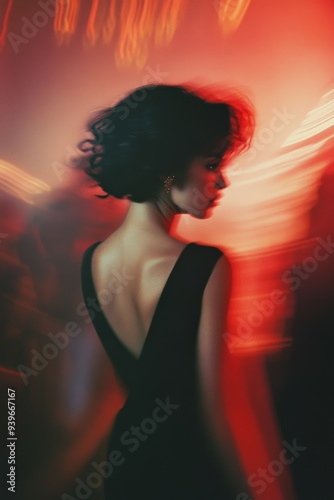 Elegant woman in stylish black dress at vibrant party during night