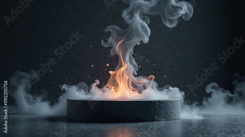 Elemental Combustion on a Stone Pedestal A Mystical Display of Fire and Vapor