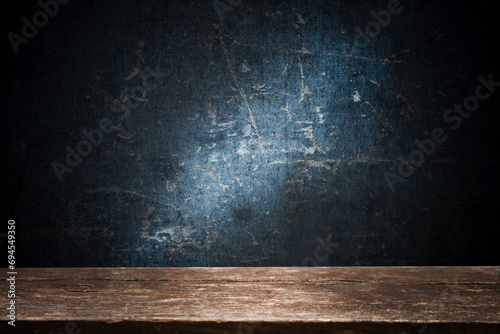 Empty wooden table with free space for advertising, dark background. For product display mounting