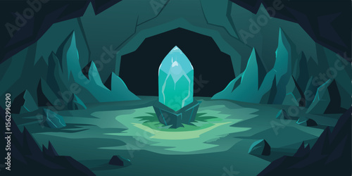 Enchanted Crystal Cave A Mystical Illustration of a Glowing Gem in a Dark Cave