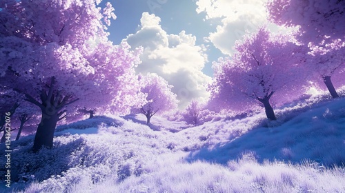 Enchanting Infrared View of a Purple Fantasy Forest