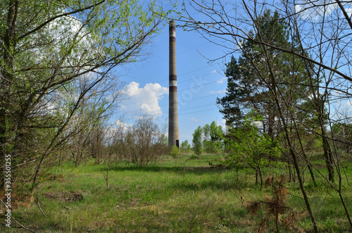 Energy. Power plant pipe under the blue sky. Photo for artistic use.