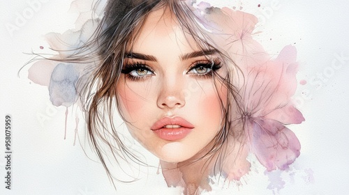 Ethereal Beauty in Sensual Watercolor Embrace - Feminine Portrait Painting Inspiring Sensuality and Grace