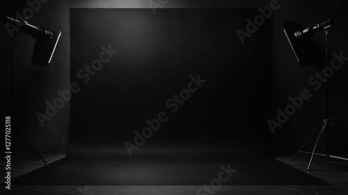 Ethereal Elegance Black Backdrop with Studio Lights Setup for Professional Photography and Design