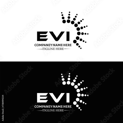 EVI logo. E V I design. White EVI letter. EVI, E V I letter logo design. Initial letter EVI linked circle uppercase monogram logo. E V I letter logo vector design. EVI letter logo design five style.