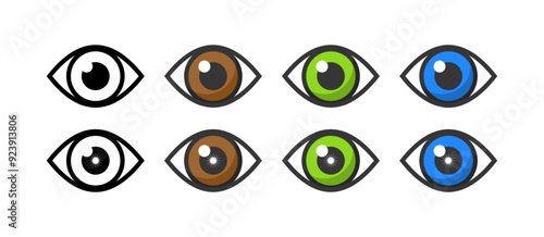 Eye set icons. Flat and linear style. Vector icons.