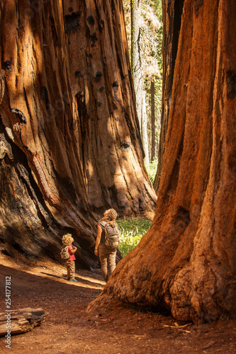 Family with boy visit Sequoia national park in California, USA
