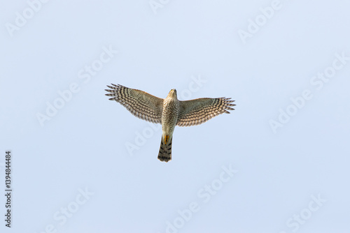 Female Eurasian Sparrowhawk (Accipiter nisus) in flight during autumn migration above Falsterbo in Sweden