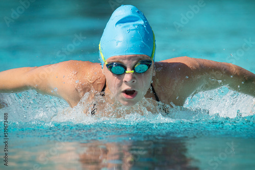 Female teenage swimmer doing butterfly
