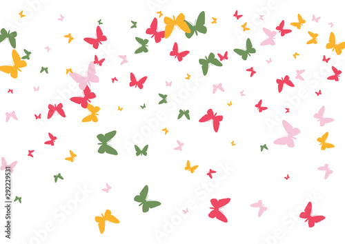 Festive colorful butterfly confetti background. Frame vector pattern texture for holiday, postcard, poster, website, carnival, banner, birthday and children's parties. Butterfly summer cover mock-up.