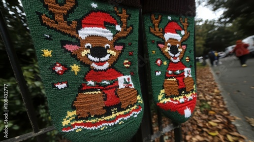 Festive holiday decorations outdoor market photographic display urban setting close-up cheerful vibes