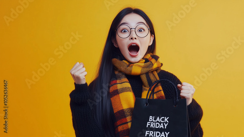 ブラックフライデーでショッピング興奮する女性