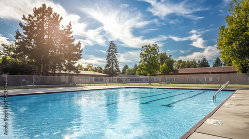 青空と太陽が輝く屋外プールの清涼感あふれる風景