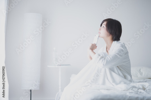 スマホ・女性・ベッド