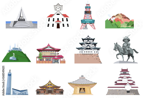 観光地マップイラストアイコン 北海道東北編
