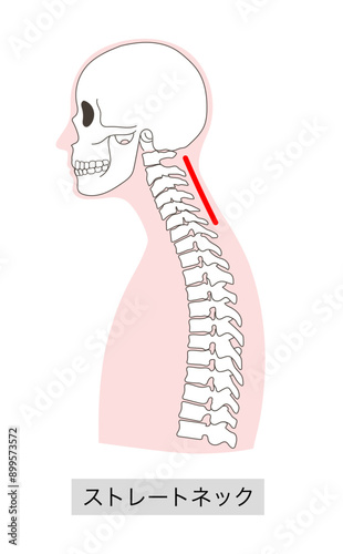 ストレートネックになった人体骨格イラスト