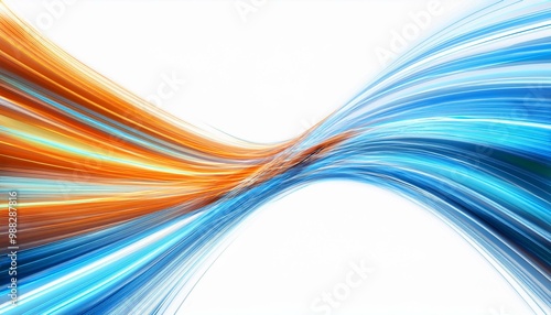 抽象 波 カラフル グラデーション 青 オレンジ ダイナミック 流動性 動き エネルギッシュ モダン デザイン 鮮やか 流れる線 パターン 光沢 反射 輝き コントラスト ルミノシティ