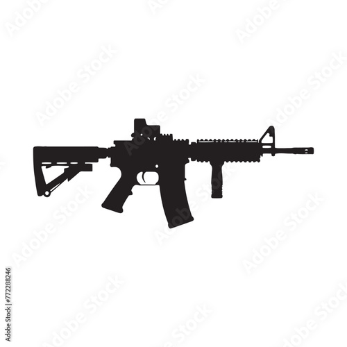Firearms Chronicle: Epic Saga of Assault Rifles Silhouette Artistry Unfolds - Assault Rifles Illustration - Minimallest Rifles Vector