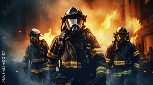 Firefighter men working in dangerous situation, Intense and bravery of firefighter on duty.