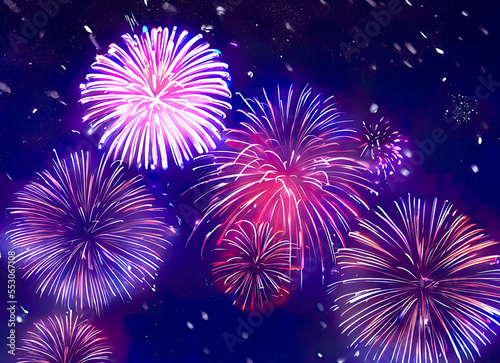 fireworks on the night sky, fireworks in cold winter night, beautiful scenery, last day of the year, Sylvestre, fireworks, awesome celebration, pyrotechnics, illustration, generative ai