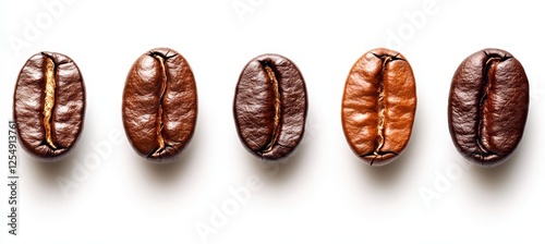 Five Coffee Beans on White A Macro Photography Composition of Roasted Coffee Beans Texture