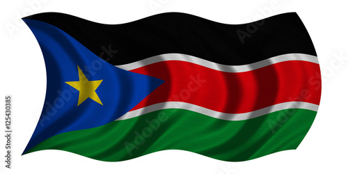 Flag of South Sudan wavy on white, fabric texture