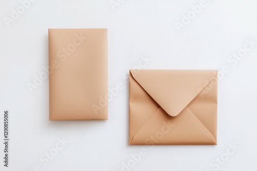 Flat lay of two tan envelopes, front and back visible, arranged on a white background.